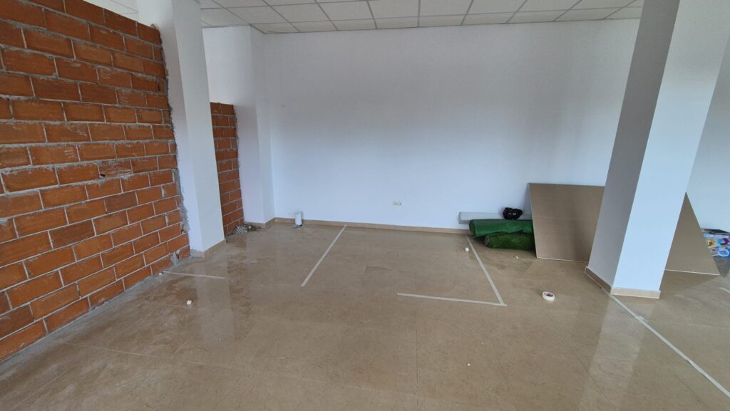 Ya falta algo menos. Nos hemos pasado toda la mañana pegando cinta de carrocero por el suelo para ver cómo podría ser la división de las zonas de trabajo.